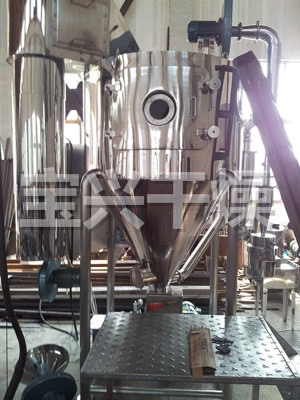该机采用全封闭形式,所有部件均采用不锈钢制造,配有三级净化装置,过滤后的空气达十万级要求。筒体与顶部装有冷壁装置,使壁温<80℃,干燥塔内装有气刷扫塔装置。经该机干燥后的中药浸膏粉,不会出现焦化变质现象,大大增加了收粉率(95%以上),而且不会产生混药现象和粘壁现象。