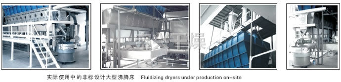 沸腾干燥,又称流化床,它是由空气过滤器、加热器、沸腾床主机,旋风分离器,布袋除尘器、高压离心风机、操作台组成,由于干燥物料的性质不同,配套除尘设备时,可按需要考虑,可同时选择旋风分离器、布袋除尘器,也可选择其中一种,一般来说比重较大的如冲剂及颗粒料干燥只需选择旋风分离器,比重较轻的小颗粒状和粉状物料需配套布袋除尘器,并备有气力送料装置及皮带输送机供选择。